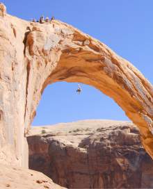 "While requiring a permit could lessen the number of people engaged in roped activities, the user conflict would still persist," the analysis said. "Visitors to Corona Arch and Gemini Bridges come from all over the United States and the world. These visitors might be able to visit Corona Arch on only one day in their entire lives."