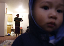 For Eh Ler Wah's fourth birthday, his family decorated their small apartment with pink, green and orange balloons strung on twirling streamers, hanging by the big photo of Hser Ner Moo. Cartoon Wah, whose family moved back to Utah in 2010, worries about Eh Ler Wah wandering out of the apartment and always remembers to keep the door locked.
