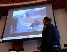 Roberts provided a play-by-play while showing about five minutes of the 31 minutes of camera footage, pointing out both the calm beginning and the violent end of the officers' interactions with Nielson.