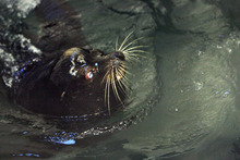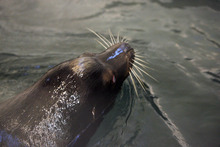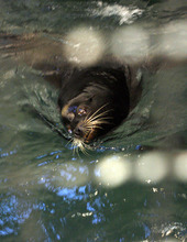 Probably the smell of water, too, judging by the sea lion's obvious joy as he whirled around the 15-foot-by-15-foot pool, doing the backstroke on a few of the laps. His every move was watched by smiling Hogle Zoo staffers, and photographed by a few.