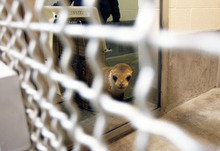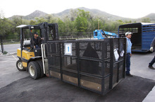 After being cooped up for so long, Big Guy moved pretty slowly when he first arrived at his new home Friday about 6 a.m. He sniffed the air above his head. His body wiggled now and then, but he didn't move when the cage's gate was opened.