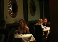The expansive kitchen setup is understandable when you survey the large and open dining space, which used to be home to Yorgio's. On arrival, diners are greeted by a host in the lobby area before being led to the main dining room a large, dimly lit room, neutrally decorated, that appears more like a steakhouse than Indian restaurant. On the left, there's a full bar, while the whole room is framed by large windows looking out to the exterior courtyard for al fresco dining and outdoor events.