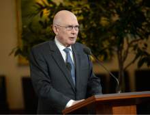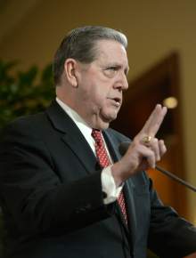Holland, who joined Oaks at the Conference Center briefing in downtown Salt Lake City, said religious organizations should have the right to "use church properties in accordance with their beliefs without second-guessing from government."