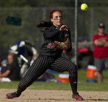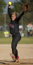 Twitter: @kylegoon • Mckenna Bull pitches a pair of wins, her fifth in two days for the Warriors.