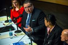 Panelist and activist Lex Scott said police are not capable of policing themselves when it comes to investigation of officer-involved shootings. She called for creation of citizen review boards.