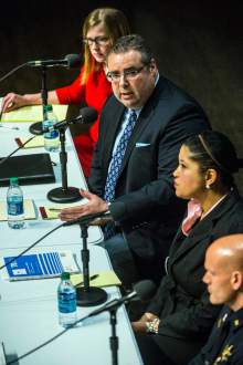 The subject of police training was front and center as Tribune moderator Jennifer Napier-Pearce showed clips of officer-involved shootings, including that of 20-year-old Dillon Taylor outside a convenience store last summer near 2100 S. State St.