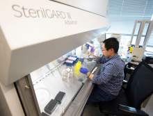 Han Han, of Recursion Pharmaceuticals, feeds cells involved in biological experiments in