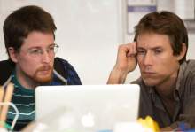 Cedric St-Jean and Blake Borgeson, of Recursion Pharmaceuticals, work in the company's offices in Research Park at the University of Utah in Salt Lake City, Monday, December 8, 2014. Recursion Pharmaceuticals is a start-up company at the University of Utah and It's scientists and engineers are taking an unusual approach to drug development, and hope to develop 100 drugs in 10 years. The company says it's strategy is two-fold. Instead of targeting specific molecular targets for a disease, Recursion makes a human cellular model of the disease and then targets the resulting phenotype (its observable characteristics of the cell) by testing the ability of compounds to restore misshapen and diseased human cells to their normal appearance and function. Doing so is a good predictor of a drug's success or failure. And instead of starting from scratch with a new compound, their business model is to partner with manufacturers to salvage and repurpose drugs that passed early safety trials but never made it to market.