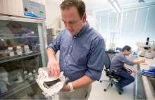 Recursion Pharmaceuticals CEO Christopher Gibson hold experimental plates created in the company's lab in Research Park at the University of Utah in Salt Lake City, Monday, December 8, 2014. Recursion Pharmaceuticals is a start-up company at the University of Utah and It's scientists and engineers are taking an unusual approach to drug development, and hope to develop 100 drugs in 10 years. The company says it's strategy is two-fold. Instead of targeting specific molecular targets for a disease, Recursion makes a human cellular model of the disease and then targets the resulting phenotype (its observable characteristics of the cell) by testing the ability of compounds to restore misshapen and diseased human cells to their normal appearance and function. Doing so is a good predictor of a drug's success or failure. And instead of starting from scratch with a new compound, their business model is to partner with manufacturers to salvage and repurpose drugs that passed early safety trials but never made it to market.
