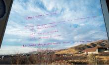 Notes jotted down from meetings and conversations are written on the windows of Recursion Pharmaceuticals' offices in Research Park at the University of Utah in Salt Lake City, Monday, December 8, 2014. Recursion Pharmaceuticals is a start-up company at the University of Utah and It's scientists and engineers are taking an unusual approach to drug development, and hope to develop 100 drugs in 10 years. The company says it's strategy is two-fold. Instead of targeting specific molecular targets for a disease, Recursion makes a human cellular model of the disease and then targets the resulting phenotype (its observable characteristics of the cell) by testing the ability of compounds to restore misshapen and diseased human cells to their normal appearance and function. Doing so is a good predictor of a drug's success or failure. And instead of starting from scratch with a new compound, their business model is to partner with manufacturers to salvage and repurpose drugs that passed early safety trials but never made it to market.