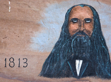 Portrait of Porter Rockwell outside his cabin in Eureka, Utah.