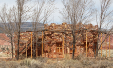 Sandstone house under perpetual construction on the western edge of Torrey, Utah.