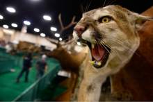 A mountain lion is on display in the taxidermy competition at the International Sportsmen's Expo at the South Towne Expo Center, Thursday, March 12, 2015. The show continues through Sunday.