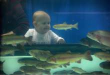Annabelle Tilly Mills, 18 months, is fascinated by the rainbow trout in the Young Fish