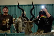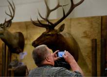 A visitors to the International Sportsmen's Expo at the South Towne Expo Center, Thursday, March 12, 2015, makes a photo of animals on display that are entered in the taxidermy competition. The show continues through Sunday.