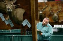 Rick Krane examines entries as he and other judges judge the taxidermy competition underway at the International Sportsmen's Expo at the South Towne Expo Center, Thursday, March 12, 2015. The show continues through Sunday.