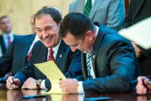 Herbert signed SB296 surrounded by members of the lesbian, gay, bisexual and transgender community, their supporters and a bipartisan collection of lawmakers, who worked for weeks in concert with leaders of The Church of Jesus Christ of Latter-day Saints, to craft the proposal.