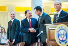 "I have no doubt the eyes of the nation are upon us," Herbert told the several hundred gathered in the Capitol rotunda for the signing ceremony. "We can do difficult things because we are determined to work together, one with another, as opposed to working against one another."