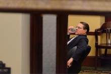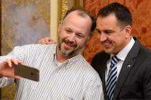 House Speaker Greg Hughes, right, poses for a selfie in the House Chamber on the last night