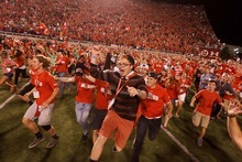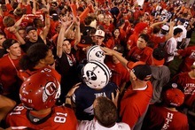 The Utes thought the game was over when BYU quarterback Riley Nelson's final pass fell incomplete, only for referees to rule 1 second remained. They thought it was over again when a 51-yard field goal attempt by Justin Sorenson was blocked. But officials penalized the Utes because fans rushed the field while the play was still in progress, giving BYU one last chance to send the game into overtime.