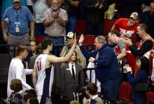 Arizona fans slap hands with players after their win over Ohio State, Saturday, March