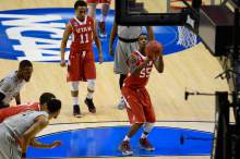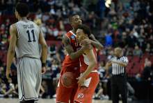 Smith-Rivera got anything but a pass going against Brandon Taylor, who stayed in front of him almost all night. With two points at the half and only six for the first 34 minutes, Georgetown's leading scorer was hassled and haggled for a 6-of-15 night.