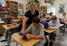 But in Leann Moody's class for struggling readers at Dixon Middle School in Provo, students perform word searches on iPads. They race against a timer, flicking their fingers to choose letters and earn points. When they make spelling errors, the app on their iPad immediately tells them so, then urges them to try again.