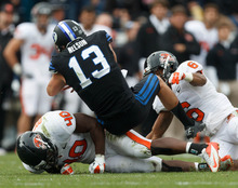 But Nelson missed Cody Hoffman (10 catches, 102 yards) twice, and then was sacked, and BYU settled for Justin Sorensen's 35-yard field goal.