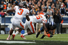 KEY MOMENT • Kyle Van Noy deflects a pass on third-and-goal at the 5, but the ball falls into Colby Prince's hands for an OSU touchdown early in the fourth quarter.