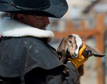 Steven Hill, a livery worker at This Is the Place Heritage Park, holds one-month-old Snowf