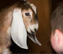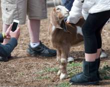 Youngsters get a close look at Rose, a one-month-old Nubian goat, at This Is the Place He