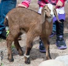 Youngsters get a close look at Rose, a one-month-old Nubian goat, at This Is the Place Heritage Park as the park kicks off its Baby Animal Season Thursday with opportunities for visitors to pet and hold lots of baby animals in Salt Lake City, Thursday, April 2, 2015.