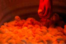 Youngsters reach into a trough of baby chicks at This Is the Place Heritage Park as the p