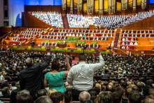 Bountiful resident Laura Pennock said she was the only one to stand and say "opposed" in the historic Tabernacle on LDS Temple Square. Those who don't have tickets to the Conference Center often watch the proceedings from that venue.