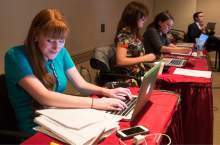 Doing that duty were Sonja Carlson, a reporter from Ogden's Standard-Examiner; Mackenzie Holbrook and Lindsey Johnson, Brigham Young University-Idaho students covering the session for their Rexburg school's newspaper, the Scroll; and Kristen Moulton, a reporter for The Salt Lake Tribune.