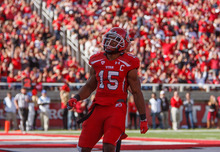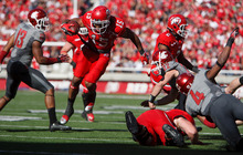Utah running back John White (15) celebrates a touchdown with teammates as Utah hosts Washi
