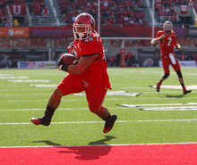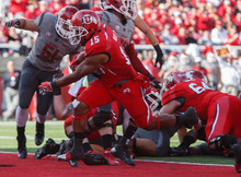 Utah running back John White (15) scores a touchdown as Utah hosts Washington State, colleg