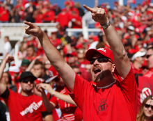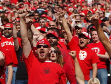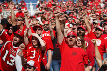 Utah fans cheer on their team as Utah hosts Washington State, college football at Rice-Eccles Stadium Saturday November 3, 2012 in Salt Lake City.