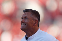Utah head coach Kyle Whittingham walks off the field after the first half as Utah hosts Washington State, college football at Rice-Eccles Stadium Saturday November 3, 2012 in Salt Lake City.