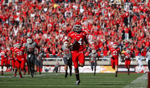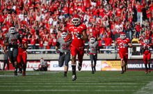 Utah wide receiver Reggie Dunn (14) sets an NCAA record with his fourth career 100-yard tou