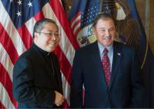 Auza, who met with Utah Gov. Gary Hebert in the afternoon, was the scheduled keynote speaker of the 2015 Mormon Studies Conference, titled "Mormons and Catholics: From the Margins to the Mainstream."