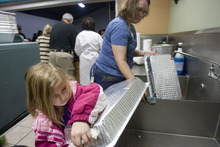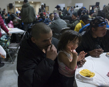 The kitchen bustling around her, Karen Hamilton scrubbed and rinsed serving pans, then enlisted her 7-year-old Isabelle to dry. Hamilton, her husband and their four children have been driving down from Rupert, Idaho, for nearly a decade in what's become a "must-do" holiday activity for the whole family.