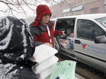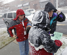 Ed Snoddy shouted a greeting to a homeless man he recognized and got a jolly "ho, ho, ho!" in response. Soon after, he steered the Volunteers of America homeless outreach van through a blur of snow into a Sugar House shopping center where he'd spotted a couple appealing to passers-by for help.