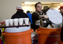 Bryan Pella brought his new bride, Kelly, and her two adult daughters to lend a hand. Over the weekend, he drove down from Smithfield with a truckload of coats and other donations from his company, Down Under Sports.