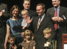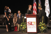 Ten-year-old Liliena Pupu'a sang the national anthem. Imam Muhammed Mehtar of the Islamic Society of Greater Salt Lake read the invocation, closing in Arabic. Andrew Valdez, a judge in Utah's 3rd District Juvenile Court, administered the oath to McAdams as his wife, Julie, and their four children stood close by. The gay-oriented Salt Lake Men's Choir performed "America the Beautiful." And the event concluded with a benediction by D. Todd Christofferson, a member of the Quorum of the Twelve Apostles of The Church of Jesus Christ of Latter-day Saints.