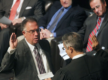 Also reciting oaths were three County Council members who were re-elected in November at-large Democrat Jim Bradley, District 2 Republican Michael Jensen and District 6 Republican Max Burdick. They were joined by Democrat Sam Granato, a newcomer who won the District 4 seat vacated by his party colleague, Jani Iwamoto.