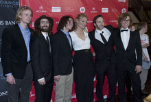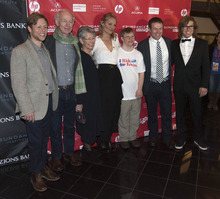Kevin Pearce, right, and director Lucy Walker are joined by Pearce's friends at the red-carpet premiere of "The Crash Reel," at the Rose Wagner Performing Arts Center Friday January 18, 2013 in Salt Lake City, Utah. The movie is a documentary about former Utah snowboarder Kevin Pearce, who suffered brain injury in a crash. Steve Griffin | The Salt Lake Tribune