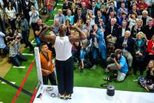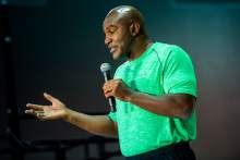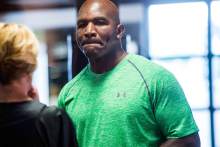 Former heavyweight boxing champion Evander Holyfield speaks at Xcel Fitness Thursday May 1