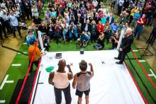 Mitt Romney and former heavyweight boxing champion Evander Holyfield square off before weighing in at Xcel Fitness Thursday May 14, 2015 .Romney will fight former heavyweight boxing champion Evander Holyfield in the marquee event Friday night at the Rail Event Center near the Union Pacific Depot in Salt Lake City on May 15.