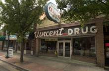 When Harry Miller retired, he sold to a nephew, Norval, who changed the name back to Vincent Drug and moved the business to its most recent location at 21 N. Main.